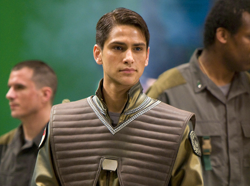 Thematically, it doesn’t strive for the depth of BSG’s pilot or even Caprica’s. Nor does it try to present a complicated web of characters. It has a simple through line and delivers high-octane action. It also gives us a glimpse of what it could have been had this been picked up by the network as a series. Adama’s relationship with his father, presented here through a voice over, only scratches the surface. But it points decisively at a potential exploration of Adama’s perceptions of war and peace. This young man, Adama, walks into battle with a list of heroes he wishes to emulate and a set of expectations about what he will accomplish. These are slowly torn down throughout the episode